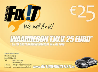 Als nieuwe klant willen wij u graag verwelkomen in onze all-round garage. Bij een grote onderhoudsbeurt krijgt u nu een waardebon t.w.v € 25,- .
